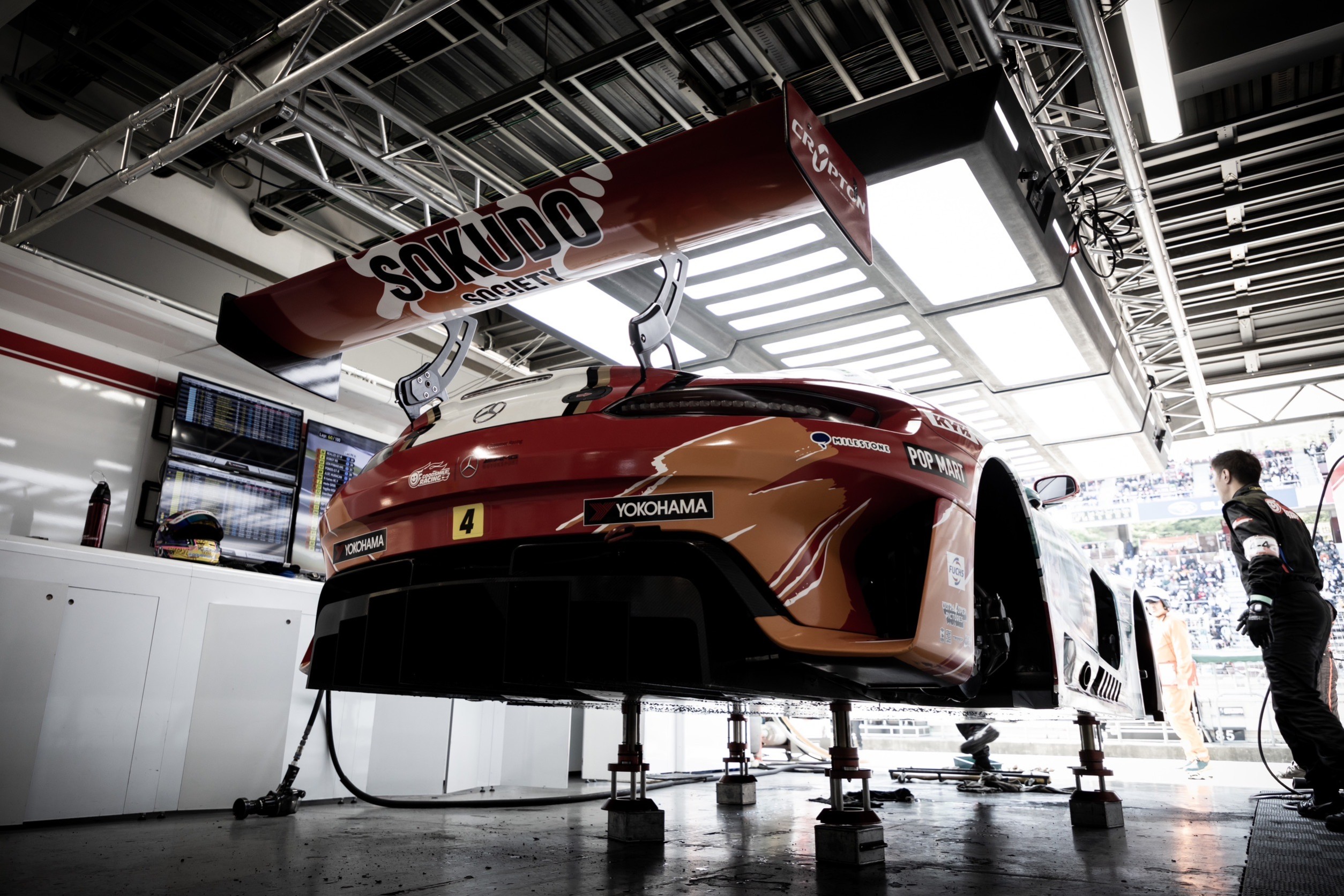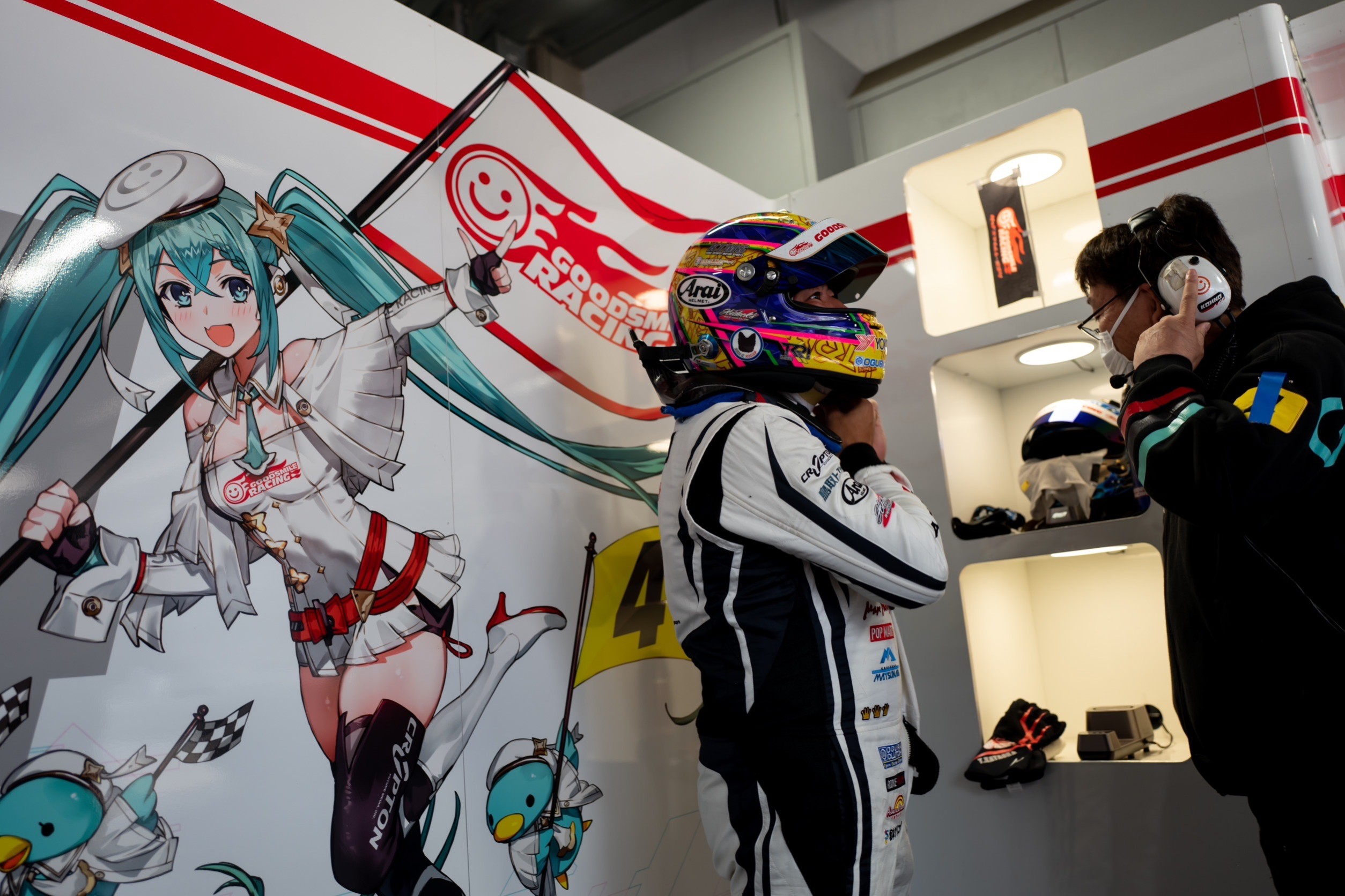 4号車グッドスマイル 初音ミク AMGは片岡選手が乗り込み、持込のセッティング、タイヤの確認を行う。